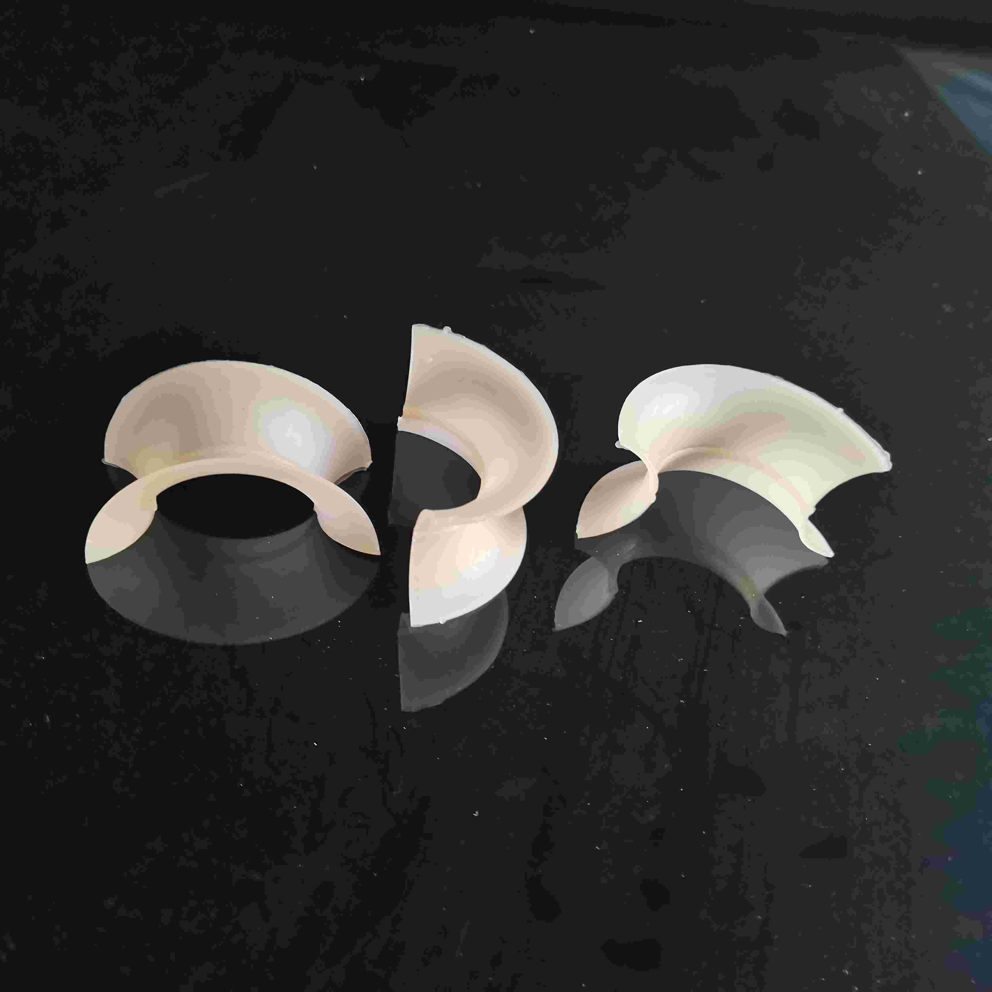 塑料矩鞍環(huán)填料對矩鞍環(huán)填料的改進是通過在鞍背上開孔,扇形弧面加工成貝殼鋸齒邊緣,使流道更加暢通,致使填料的單元匯聚點增多,所以提高了它的綜合性能。